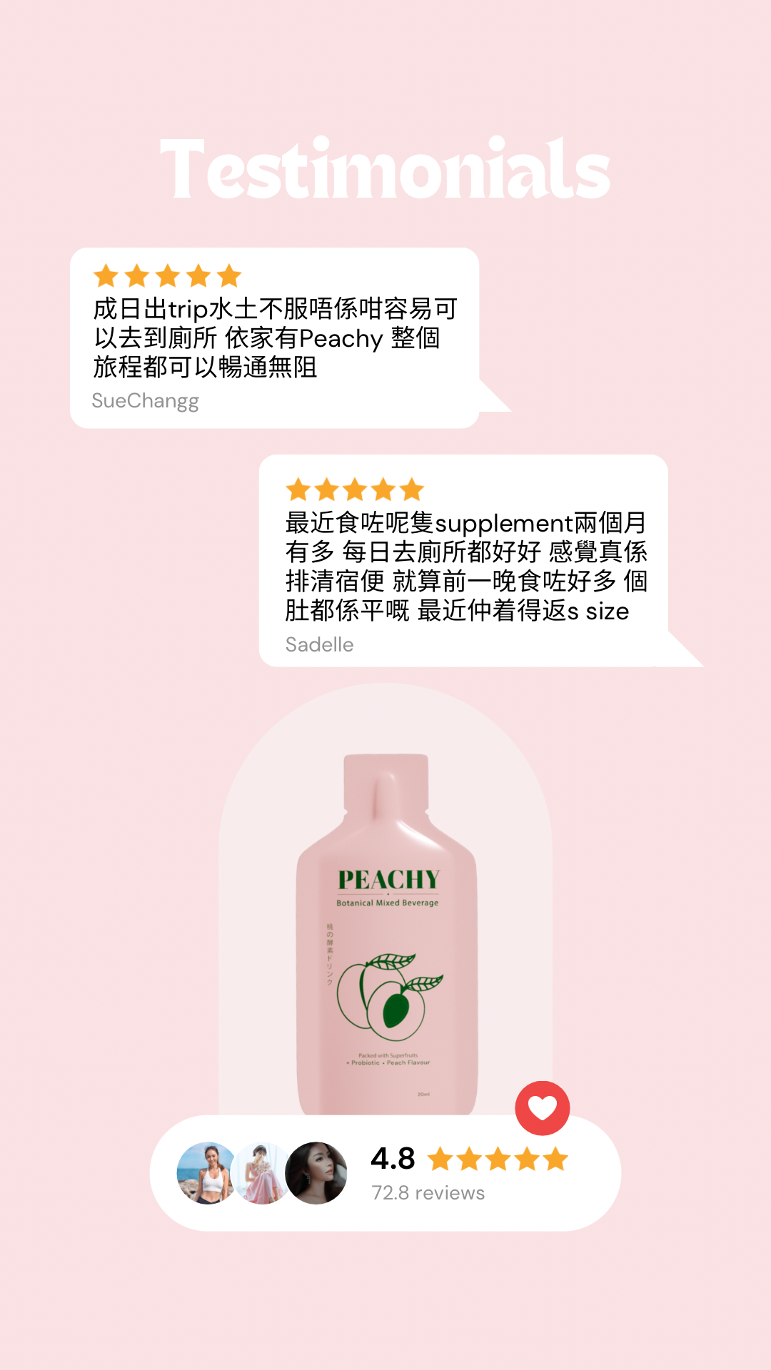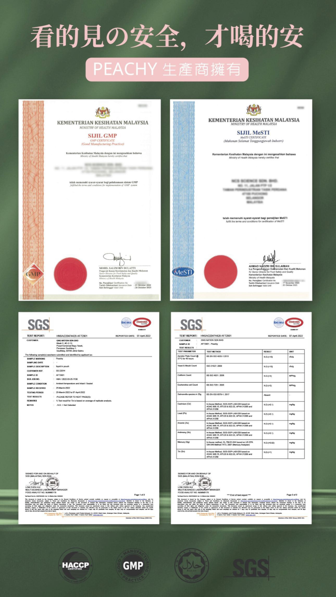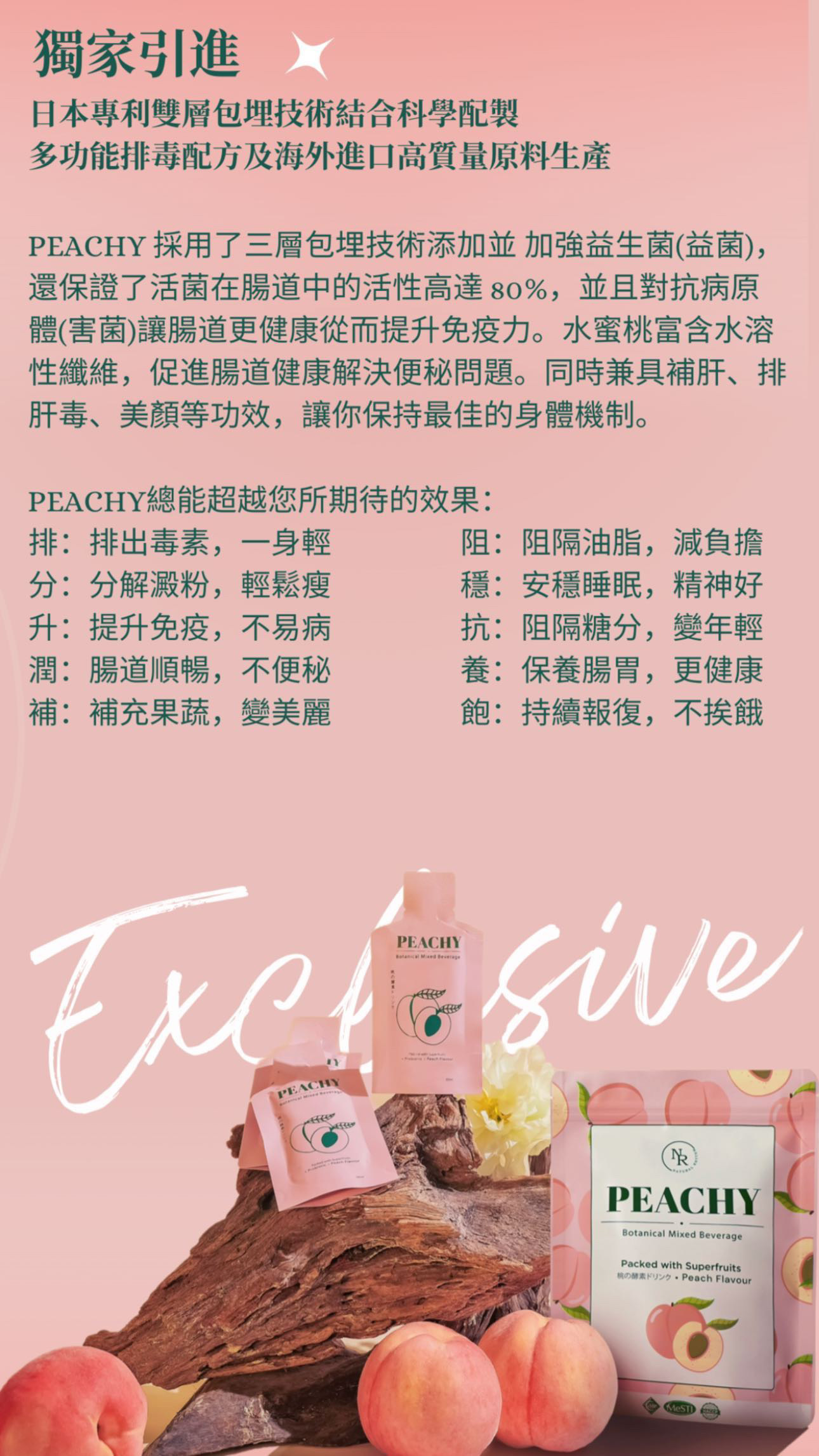 •服用之後隔天需飲用3公升以上的水,能加速新陳代謝,讓PEACHY 更好的吸收,也可以配合運動,以達到更好的瘦身效果。